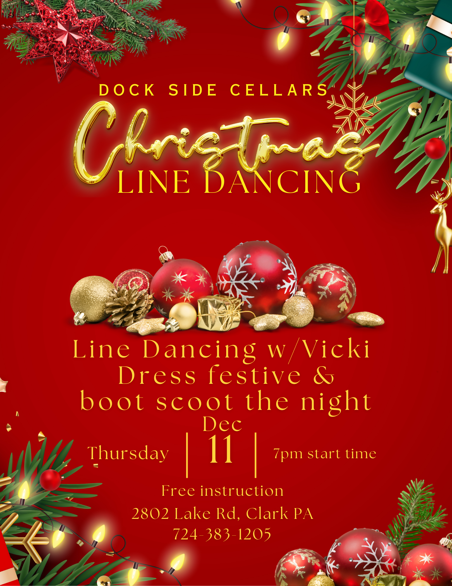 Christmas-themed line dancing with Vicki. Dress in your best festive clothes!