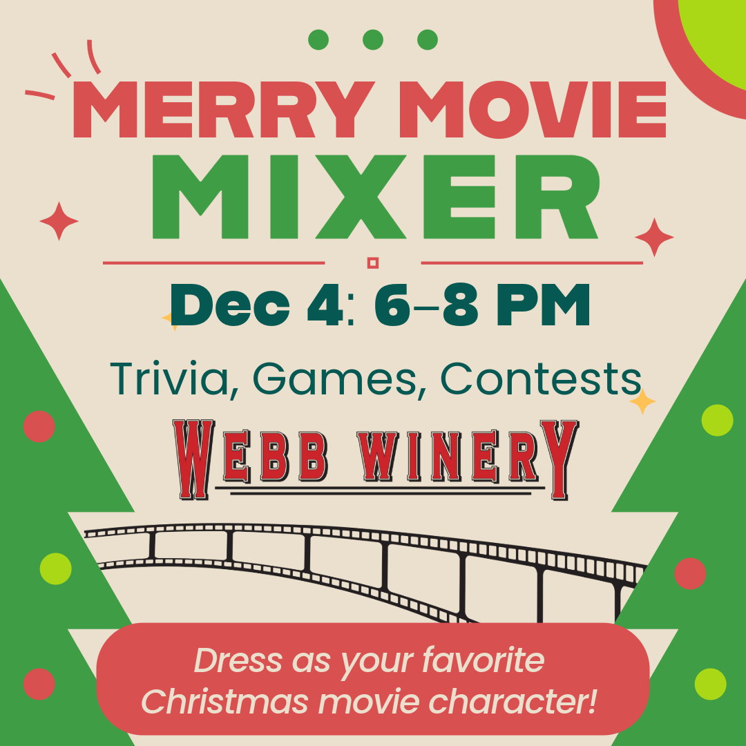 04dec6:00 pm8:00 pmMerry Movie Mixerat Webb Winery